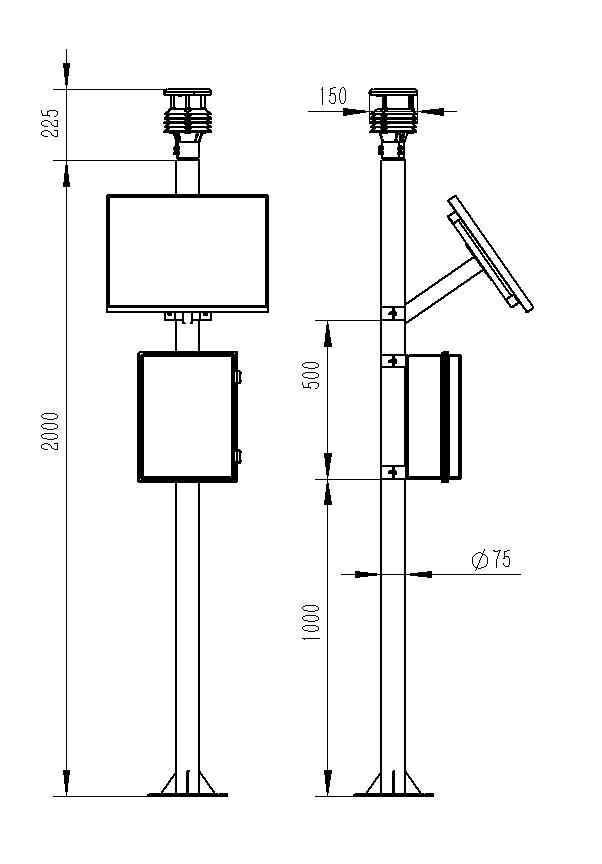 5、兩米碳鋼支架,頂部無需法蘭盤可直接套接傳感器